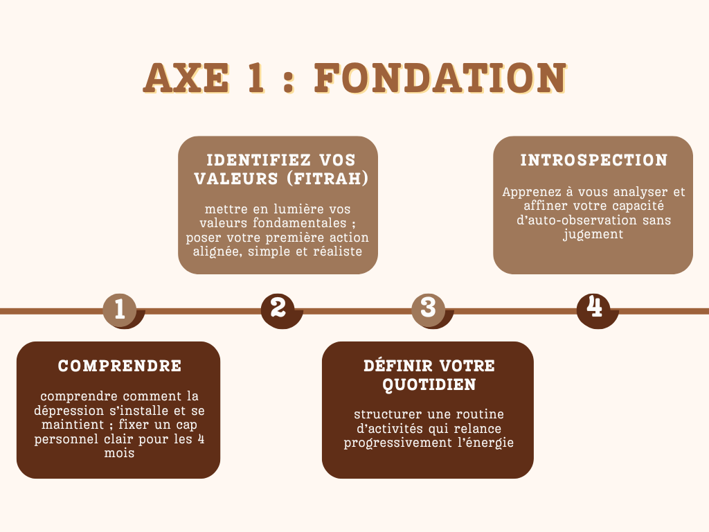 Dans le cadre du groupe, ces axes seront traités pas à pas, soutenus par les outils des TCC-ACT et par une perspective spirituelle ancrée dans l’esprit de l’Ummah.